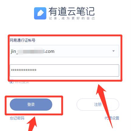 打开有道云笔记软件,在“有道云笔记”登录窗口中,输入有道云笔记的账户和密码,并单击“登录”按钮。