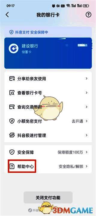 5、在我的银行卡的页面中直接点击【帮助中心】;
