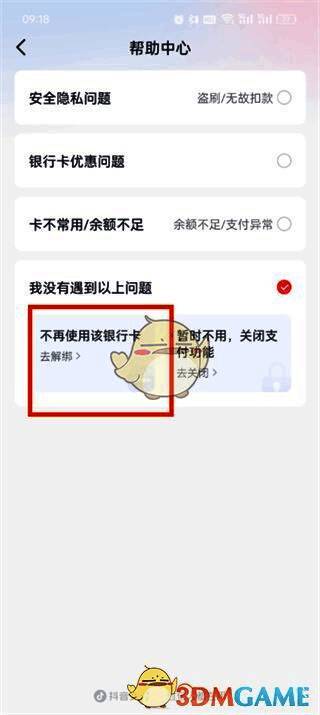 6、点击【我没有遇到以上问题】,之后会有两个选择,点击【不再使用该银行卡】;