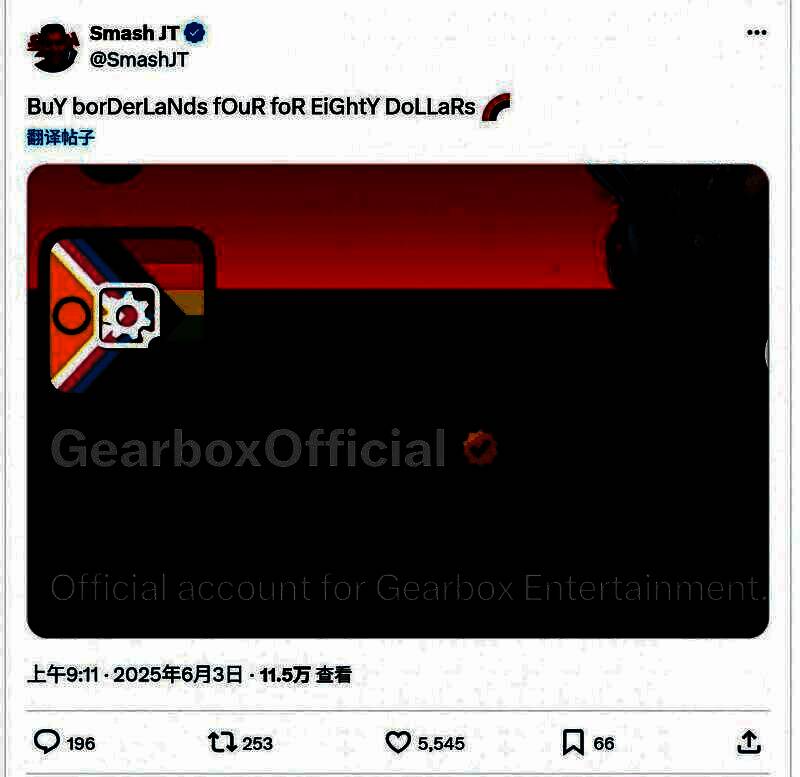 《无主之地》开发商再度陷入舆论风波。继CEO狂言“如果你是真粉丝,《无主之地4》80美元定价也会买”引发大量玩家批评和抵制游戏后,《无主之地》官推也因庆祝“骄傲月”而被粉丝狂喷。
