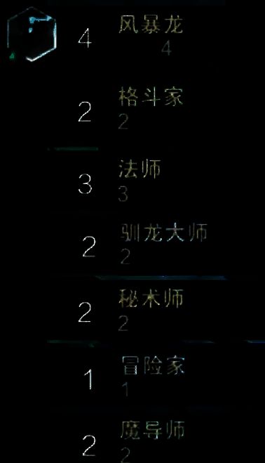 4风暴龙、2格斗家、3法师、2驯龙大师、2秘术师、1冒险家、2魔导师