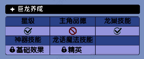 巨龙:仅适用星级、龙巢和龙语魔法技能(主角品德不生效)。