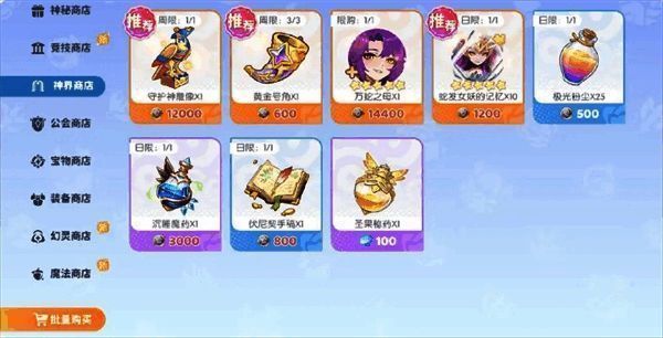 另外神界裂隙战斗胜利后获取的神界币,可以在神界商店中兑换到宝物、角色碎片等奖励,个人是会优先屯起来换宝物。
