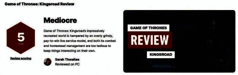 免费游戏《权力的游戏:国王之路》现已正式推出,IGN近日给这款游戏打出了5分的差评,表示其中存在付费门槛和NPC动画过于难看等问题。