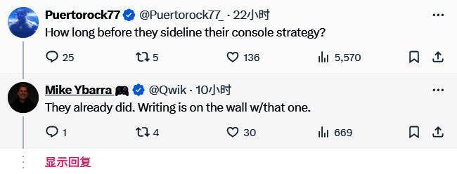 有粉丝在评论区问他,微软距离彻底放弃主机战略还有多久。Ybarra的回复是:“他们其实已经放弃了,这件事已经昭然若揭。”