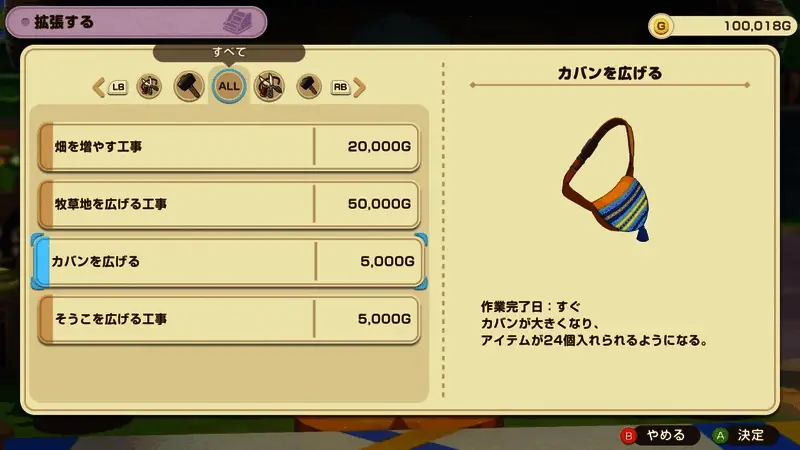 例如开辟新的耕地、建造动物小屋、扩充背包容量等,都可以在工程行的协助下实现。