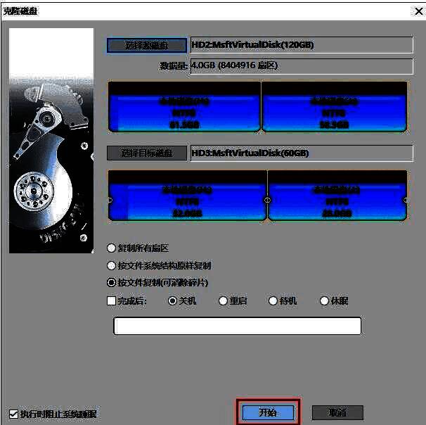 3、然后点击“开始”按钮,DiskGenius将开始克隆分区过程。
