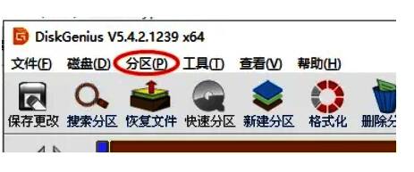 1、打开DiskGenius软件,在左侧磁盘列表中找到目标磁盘,展开后选择需要格式化的分区,然后点击“分区”。