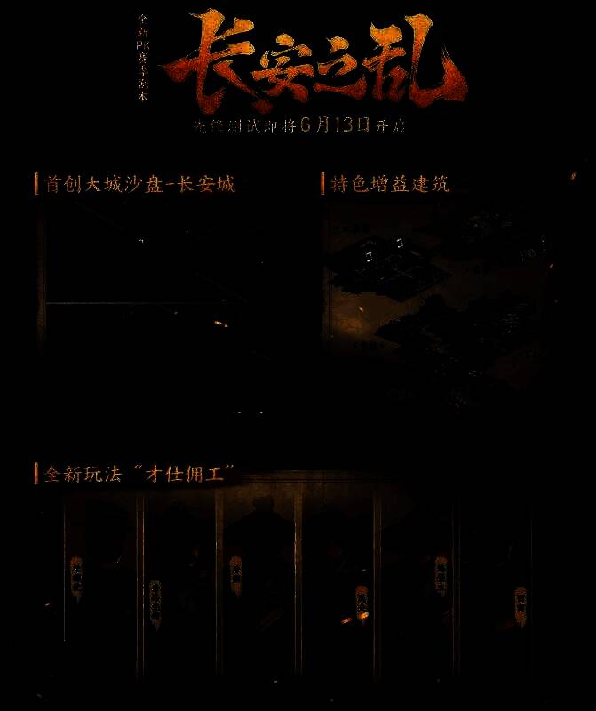 7月新PK赛季剧本“长安之乱”的曝光,则为玩家描绘出令人心驰神往的战术蓝图。该剧本将打造业内首个突破性的城巷立体沙盘,玩家将在街巷交错的长安城中体验前所未有的“千人级巷战”。在“长安城”这个全新战场中,还将新增各类特色增益建筑,势必将呈现出让人耳目一些的深度策略体验。最引人注目的是全新“才仕佣工”玩法,玩家可打造个人专属“第六队”,解锁“开路先锋”、“迁都使”、“斥候”等特殊职业角色,在资源采集、战术侦察、快速迁移等方面获得独特优势,极大丰富战术维度。