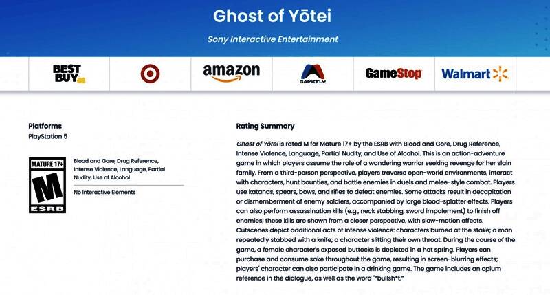 《羊蹄山之魂》最近在北美完成了分级,ESRB给出了M 17+评级。作为一个复仇动作游戏,《羊蹄山之魂》充斥着大量血腥镜头,这是不可避免的。不过有意思的是,ESRB还提到了一个《对马岛之鬼》之中最受欢迎的部分回归:温泉露臀。