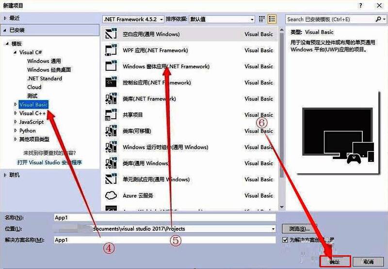就到了新建项目的窗口,这时你可以选择各种编程语言进行编程,点击Visual Basic,选择“Windows窗体应用”,点“确定”即可。