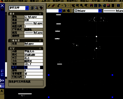 出现特性栏,在特性栏中找到字体的高度。修改高度栏中的数值,字体就随之大小 变化。关闭特性栏保存文件。字体就修改完成了。