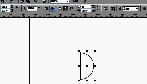 首先按住ctrl绘制一个半圆,旋转一定的角度。