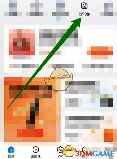 1、在作业帮的【首页】上方点击【拍试卷】进入,