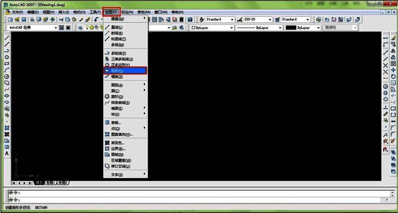 然后点击上方菜单栏里的【绘图】功能选项,找到【矩形】功能键,点击【矩形】功能键,在绘图面板上绘制一个矩形,如下图所示。