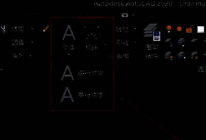 “文字”图标下拉菜单中可以选择“多行文字”或者“单行文字”