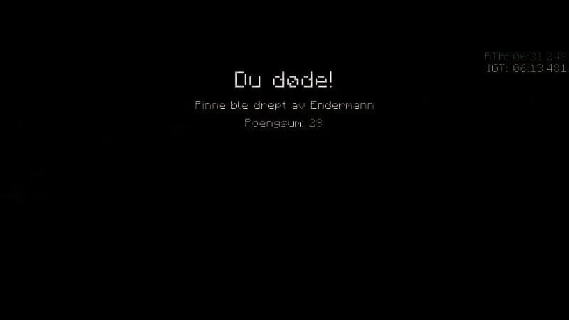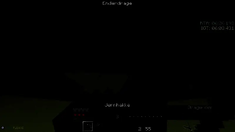 ·然而意想不到的事来了,玩家在等待结局之门时打开创建画面,一时的疏忽导致与末影人(恩德曼)对视了0.25秒而已,招来了末影人的制裁,一顿爆锤将刚才BOSS战斗残血的玩家角色直接干翻GAMEOVER,伴随着skycrab1的惨叫,原本能够提前30秒之多的世界记录就此梦碎,如果没有这个厄运,估计新记录可能永远也不会被破。