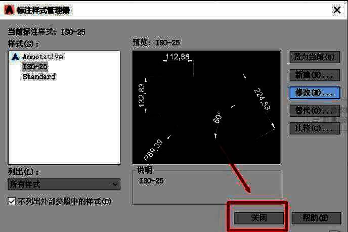 回到“标注样式管理器”,点击 “关闭”,就设置成功了。
