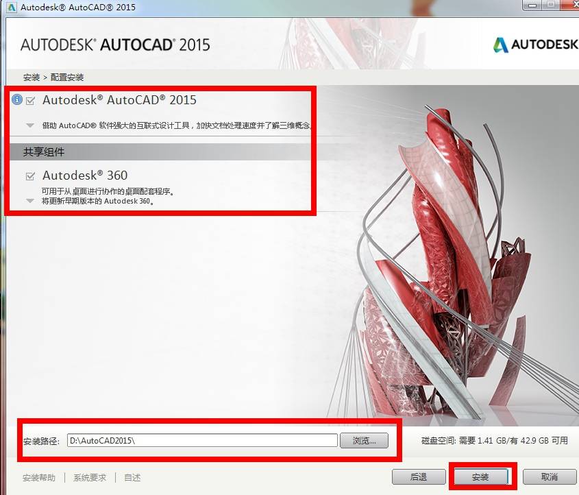 第四步:过一分钟左右就会弹出安装画面,我们就可以开始安装CAD2015了(如图所示)。