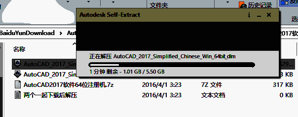 2、双击CAD2017安装程序,进行解压到,一般是C盘的AUTODESK文件夹中,点击确定(如图所示)。