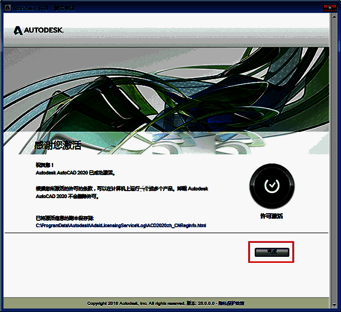 13、这样CAD2020就完成了激活。点击【完成】即可。
