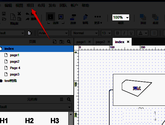 然后我们点击了Axure8的交互设计的,点击菜单中的项目的菜单。