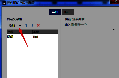 这时就会弹出了一个元件说明字段与配置 ,就会弹出点击添加按钮。