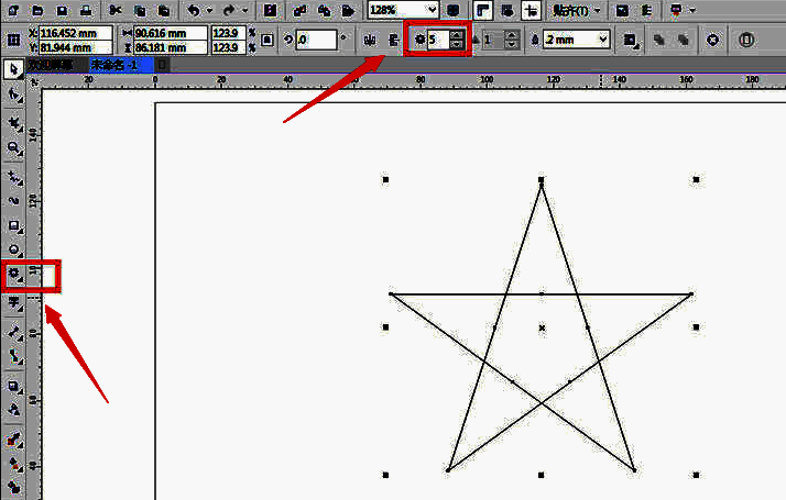 1.首先,在CDR中点击复杂星形工具,画一个正五角星