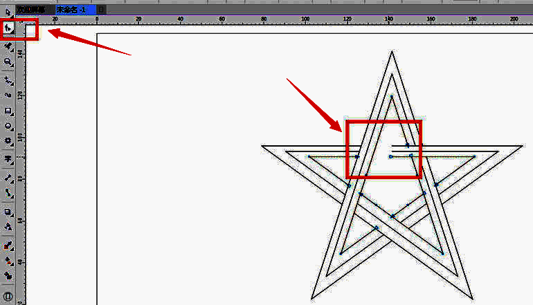 4.最后,点击形状工具按钮,双击五角星的各个节点,断开重叠线条