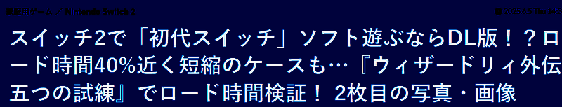 ·根据之前的情报,任天堂曾表示即使不是二代主机专用游戏,游戏加载速度也会特省,于是媒体找来了目前正在热卖的一代游戏《巫术外传:5个试练》做测试。