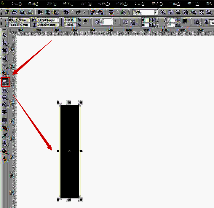 1.打开CDR界面后,新建一个空白文件,选择矩形工具绘制一个黑色填充矩形