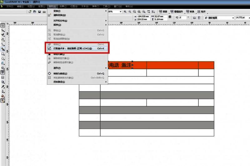4.鼠标选中文字,点击排列菜单中的打散美术字效果