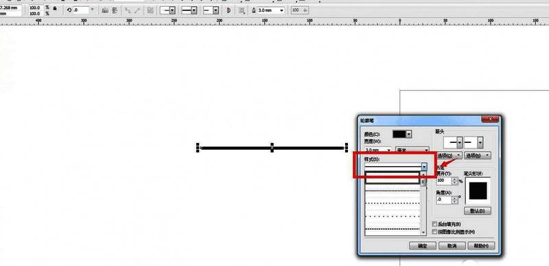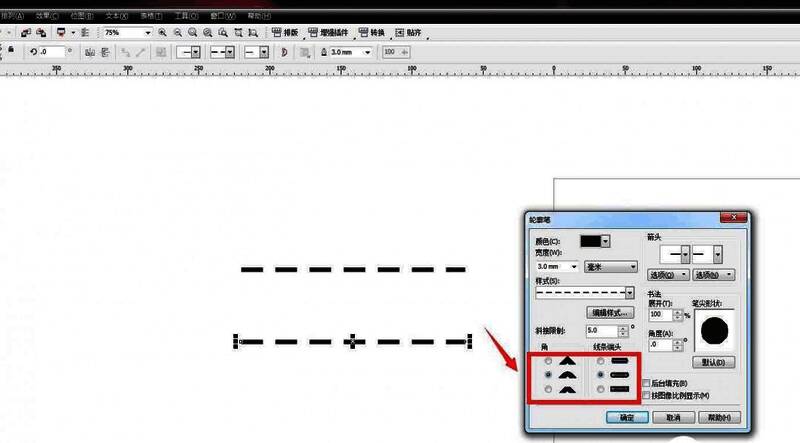 cdr虚线怎么设置圆头