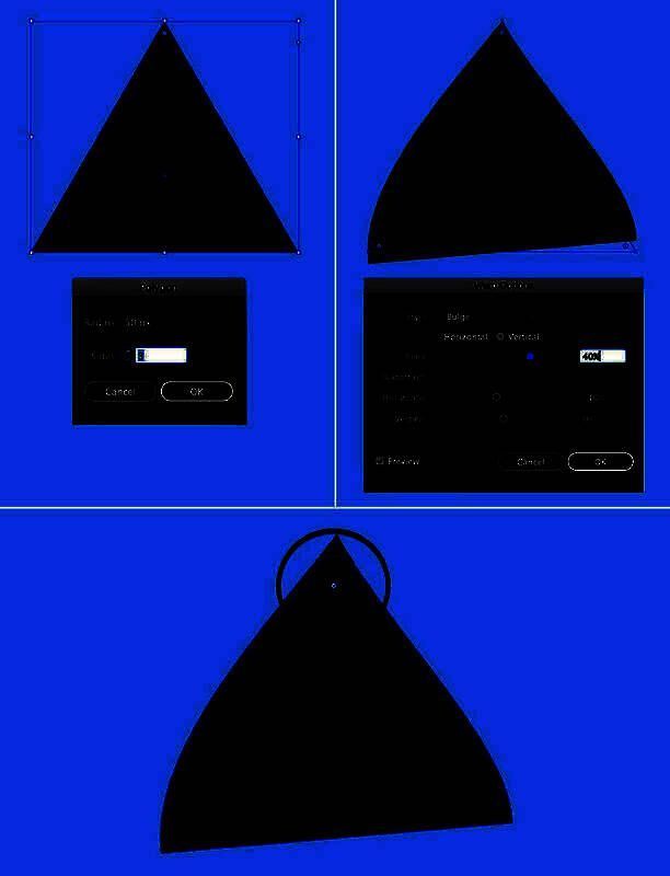现在让我们改变形状,使它看起来更像一只耳朵。保持选择,转到效果>变形>凸出并将垂直弯曲值设置为40%; 水平扭曲至-10%。 这样,我们的形状膨胀并向左弯曲。