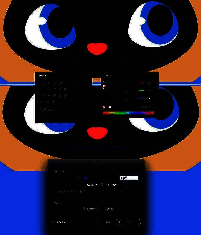 我们继续描绘嘴巴。使用线段工具(),同时按住Shift键绘制直线。从颜色面板中应用深灰色笔画颜色。 调整线的厚度,粗细设置为3pt,并将帽盖设置为圆帽,从顶部的控制面板或描边面板(窗口>描边)。