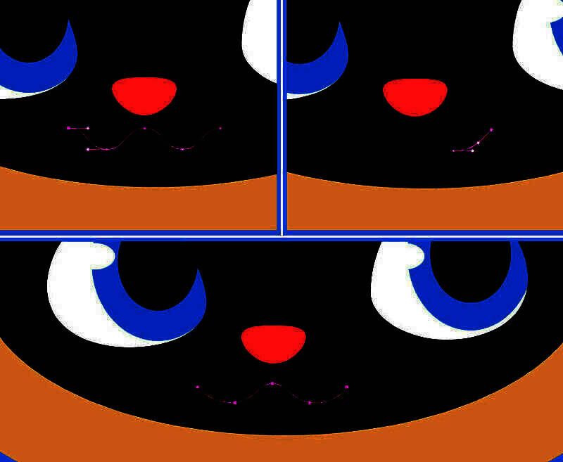 对象>扩展外观以应用效果。现在我们可以使用直接选择工具(A)编辑线的末端。向下旋转锚柄,使嘴角变圆。