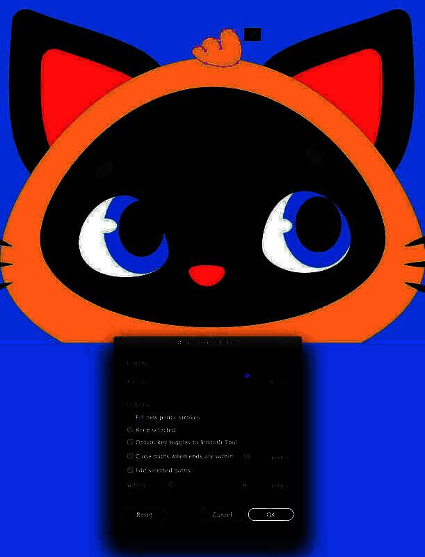 使用铅笔工具(N),通过在顶部添加一个有趣的头发来完成小猫的头部。您可以通过双击工具的设置来打开铅笔工具选项窗口来调整工具的设置。 从这里,如果您想使线条更平滑或更向左,如果您使用的是图形平板电脑以及牢固的手,请进一步向右移动保真度滑块。