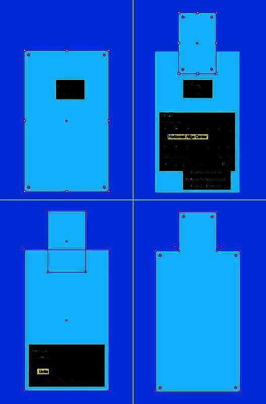 所以让我们创建一个90 x 150像素的浅蓝色矩形开始制作我们的瓶子。添加一个40 x 65像素的矩形,并将其放在第一个的顶部,形成瓶颈。