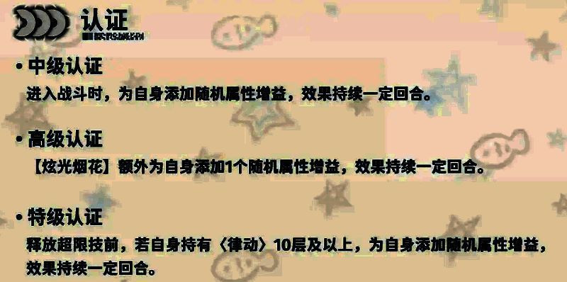在技能的强化方面,翠鬓的成长也非常值得关注。她的中级认证能够在进入战斗时为自己施加随机增益,而高级认证则让她的普攻额外获得一个随机增益,增加了她的灵活性。最强大的特级认证则是在使用超限技之前,如果她身上有10层以上的律动,她还能为自己加一个额外的随机增益,进一步增强她的超限技威力。这些认证使她在不同的战斗阶段都能灵活应对,发挥出最大的潜力。
