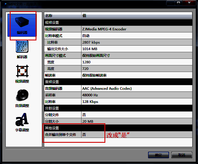 5、之后在“高级选项”界面的“编码器”中将“合并输出到单个文件”改成“是”就可以了;