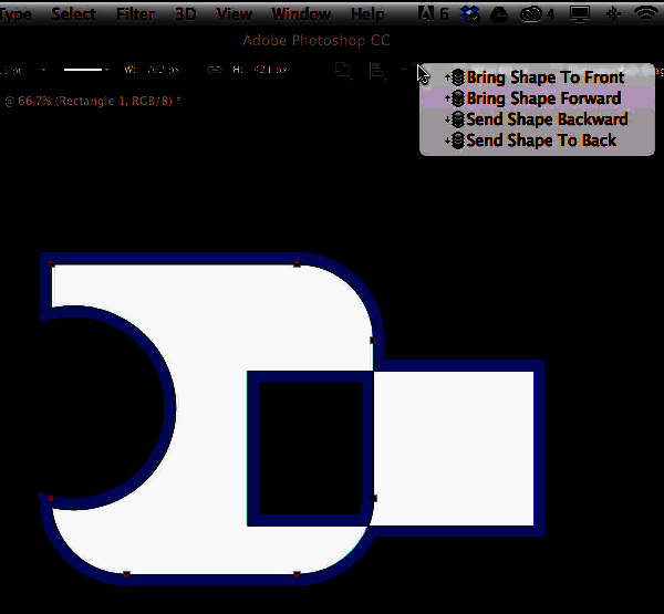 精通路径操作后,还应当学习如何利用路径排列来工作。路径排列也会影响图形结合的方式。这与图层结构的概念类似,可在层次结构中上下移动路径。上面的路径优于下面的路径。这个功能只有当你选择一个矢量蒙版或者矢量图形图层时才会在选项栏中显示。