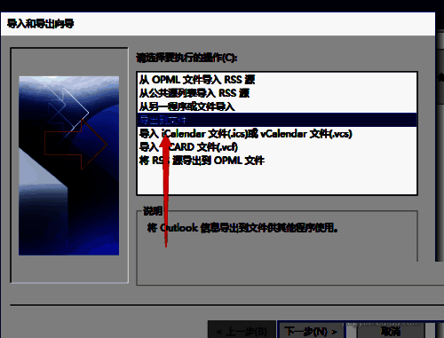 4、随后,在执行操作一栏中选择导出到文件选项,点击进入下一步
