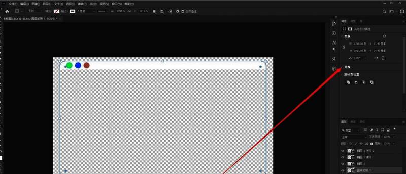 接着,在右上角出现的属性面板中找到外观。