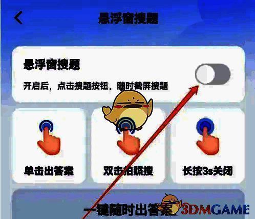 3、在悬浮窗搜题页面,关闭悬浮窗搜题按钮即可。