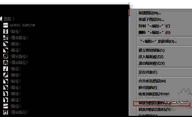 点击图层1,点击最右边的倒三角,点击释放图层顺序。