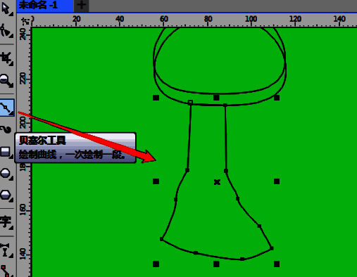 5.用贝赛尔工具绘制出闭合的图形,形状工具调整节点。