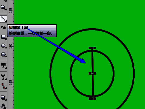 6.再绘制出多个椭圆,用贝赛尔工具画出一条线段。