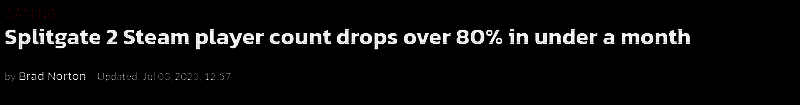 曾被发行商寄予厚望,意欲再次“让FPS再次伟大”的《分裂之门2》发售一个月后,如今活跃玩家已骤降至初期二成,实在难以维持玩家的黏性。