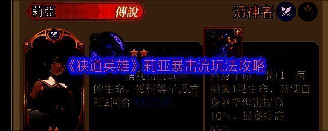 本篇给大家带来了《狭道英雄》莉亚暴击流玩法攻略,这个角色的,烧血、锁1血的高风险高buff加成玩起来很有一种在刀锋上游走的感觉(有点类似在细胞里用咒刃闯关的感觉),而且她也经常能打出核爆大数值。