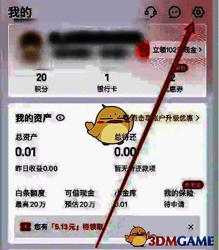 1、进入京东金融APP我的界面,点击右上角“设置”